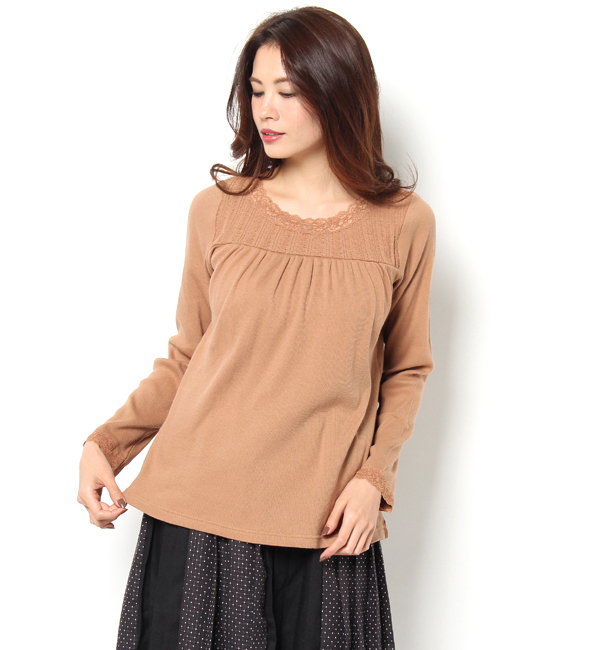 【3000円(税込)以上で送料無料】 襟元と袖口にあしらった繊細なレース使いがフェミニンさを薫らせるポイントのプルオーバー。高め位置のヨーク切替えに、透かし柄使いでモダンなメリハリと豊かな表情が加わったアイテムです。シンプルなワントーンカラーでコーディネートに取り入れやすく、幅広いスタイリングに活躍してくれるマルチなアイテムです。 サマンサモスモス/Samansa Mos2 トップス|Tシャツ・カットソー,プルオーバー