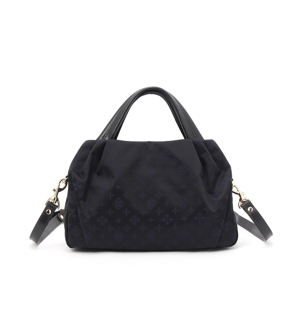 【送料無料】 モノグラムとレザーハンドルの色の組み合わせがポイントのトートバッグ。3層構造のデザインで、メイン開口はファスナー仕様、他の開口はマグネット仕様になっているので、防犯面でも安心してお使いいただくことが出来ます。タックを入れることによってふっくらとしたフォルムに仕上げました。必需品であるお財布や携帯、ポーチなど、お荷物をしっかりと収納することができるのも嬉しいポイント。メイン開口部分には、オープンポケット2つ、ファスナーポケット1つと、小物類も整理して収納できるポケットがデザインされているのも◎ ショルダーベルトが付いており、シーンや気分によって使い分けができ、軽く持ちやすいのもポイントです。前後にアオリポケットを備えた使い勝手のよさも見逃せません。<カラー表記>・ネイビー・・・Black Navy ラシット/russet バッグ|トートバッグ