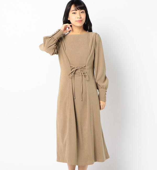 【送料無料】 フロント部分のレースアップがポイントのワンピースです。レースアップのデザインでメリハリのあるシルエットに。ヒザ下のロング丈が今年らしい仕上がりの一着で、キレイめからカジュアルまで幅広いスタイリングをお楽しみいただけます。※末永く愛用頂く為に、アテンションタグ・洗濯ネームを必ずご確認の上、着用又はお取り扱い下さい。 シップス/SHIPS Khaju|ワンピース|ワンピース