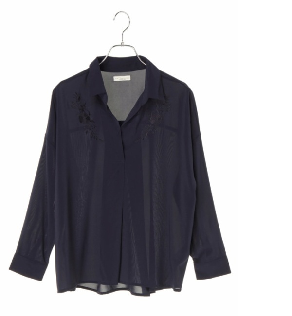 【3000円(税込)以上で送料無料】 女性らしさを引き立たせるスキッパーネックに、花刺繍をあしらい品よく仕立てた大人レディなシャツ。落ち感のある軽やかな生地使いと、タックが作り出すリラクシーなシルエットで、大人のエフォートレスな雰囲気を漂わせます◎合わせるアイテム次第で、カジュアルにも綺麗めにもスタイリングできるマルチな着回し力もお気に入り。 アースミュージックアンドエコロジー/earth music&ecology earth music&ecology|トップス|シャツ・ブラウス