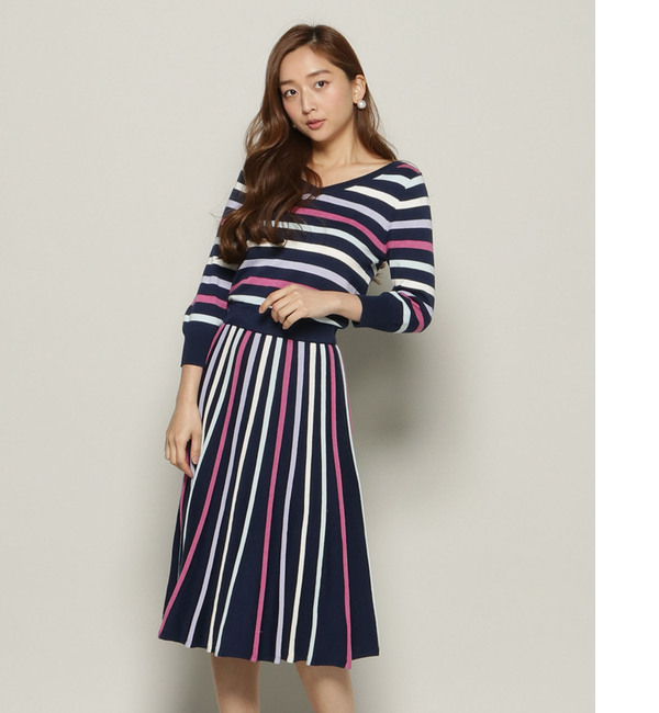 【送料無料】 2017SSに人気だったシルエットの7分袖バージョン。前後2WAYで着れるニットワンピース。程よく広がるフレアー感と、少し長めの丈感が大人の女性らしい雰囲気に。ニットなので着心地も良く綺麗なシルエットを演出します。1枚でコーディネートが完成するのでカラフルな色合いでお出かけ着としてもしっかり活躍します。 アンドクチュール/And Couture ワンピース|ワンピース