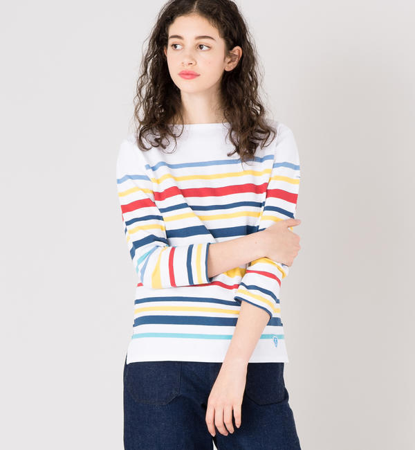 【送料無料】 フランス海軍のユニフォームに採用された歴史をもつ、ORCIVAL を代表するフレンチセーラーT シャツから、アイキャッチのあるマルチボーダーのニューモデルが登場。使用されているラッセル生地は、一般的なカットソー地に比べ非常に多くの糸を使用した複雑な構造になっています。今ではフランスに数台しか残っていない機械で、当時の製法をそのまま継承して作られています。通気性に優れており、年間を通して着用が可能です。着込むほどに風合いが増し、体に馴染んでいく、まるでデニムのような経年変化を楽しめる一枚です。※着用、お取り扱いの際は商品についておりますアテンションタグ、洗濯ネームを必ずご確認ください。※この製品は洗い加工を施しておりません。その為、生地の特性上、通常の家庭洗濯でヨコ方向(身幅や袖幅)に2センチ前後の縮みが発生します。お買い求めの際はサイズにご注意ください。また、洗濯での型くずれが生じる場合があります。洗濯後にはヨコ方向に少し伸ばし気味に形を整え、干してください。乾燥機のご使用はお避け下さい。【ORCIVAL(オーシバル)】1939年にフランス・リヨンで設立したマリンウェア・ブランド。1950年代?60年代にはフランス海軍の制服としてボーダーTシャツを提供していた。現在も定番のラッセル生地はフランスに数台しかない縦編み機で作り続けている素材を使用している。 ビショップ/Bshop ORCIVAL|トップス|Tシャツ・カットソー