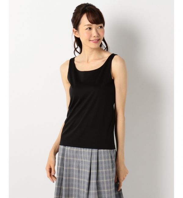 【送料無料】 ◆伸縮性抜群!オールシーズン活躍のシンプルなインナーシリーズ◆光沢があり、保湿性と放湿性のバランスがとれた糸で編立てたタンクトップです。編み針のフックを通常より小さく別注に改良しており、インターロックの目が綺麗に立つようにした細部こだわった一枚です。その後、特殊な加工を施し、ドレープ性と綿糸の更なる光沢のある素材感に作りあげました。そのため伸縮性も良く、肌にまとわりにくくなっており、インナーに最適な素材となっています。季節を問わず着用できるシンプルなデザインで、一枚あると重宝するアイテムです。同素材で、キャミソール(KKWXHS0133)のご用意もございます。日本※生産の都合により素材・原産国が変更になる場合がございます。 クミキョク/組曲 組曲|トップス|Tシャツ・カットソー