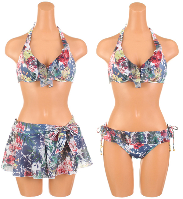 ショートパンツ付き総柄フリルビキニ