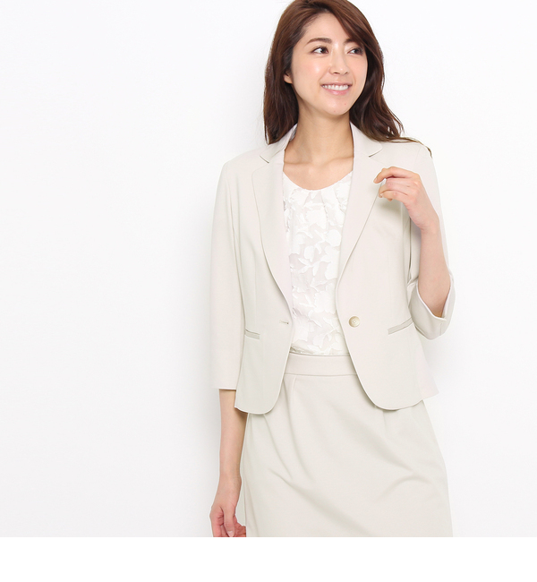 【送料無料】 衿先や前端裾のまるいカーブがSunaUnaらしい柔らかさを演出。心地よいストレッチ性がありながら、戻りも良く安定性があるので、着用時にきれいなシルエットをキープします。また綿混なので爽やかな着心地なうえ、薄手で軽いので夏場にも活躍してくれます。054カラーはオリジナルで染めたグレージュです。モデル情報:身長170cm B82 W58 H85 着用サイズ:38店舗へのお問い合わせ商品番号:545-42024主に夏に着用いただける商品です。 中国製 スーナウーナ/SunaUna SunaUna|ジャケット・スーツ|テーラードジャケット