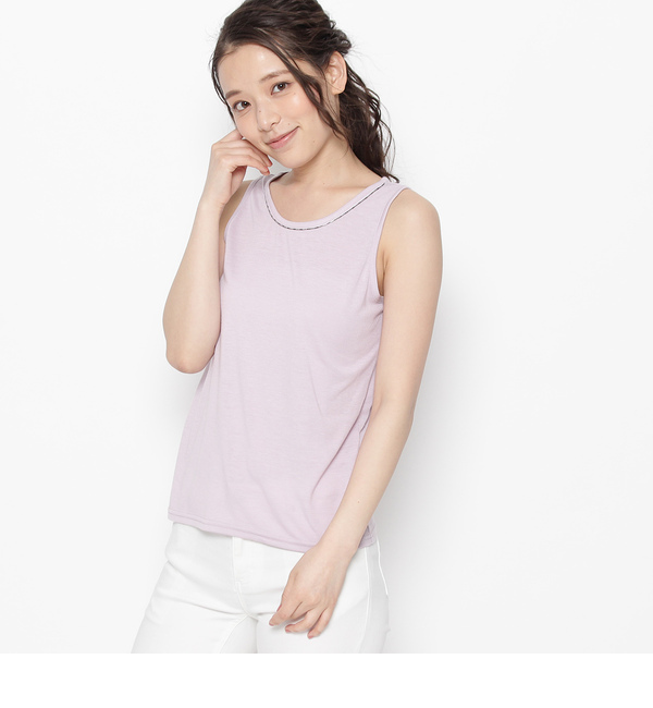 【3000円(税込)以上で送料無料】 ネックのラインに沿ってメタルビーズがあしらわれたタンクトップです。ラウンドのカットは浅めで、インナーとしても羽織りの下に1枚で着てもOK。薄手でさらりと滑らかな素材です。モデル情報:身長168cm B80 W56 H84 着用サイズ:38(M)店舗へのお問い合わせ商品番号:763-12517主に夏に着用いただける商品です。 ベトナム製 ピンクアドベ/pink adobe ピンクアドベ|トップス|キャミソール